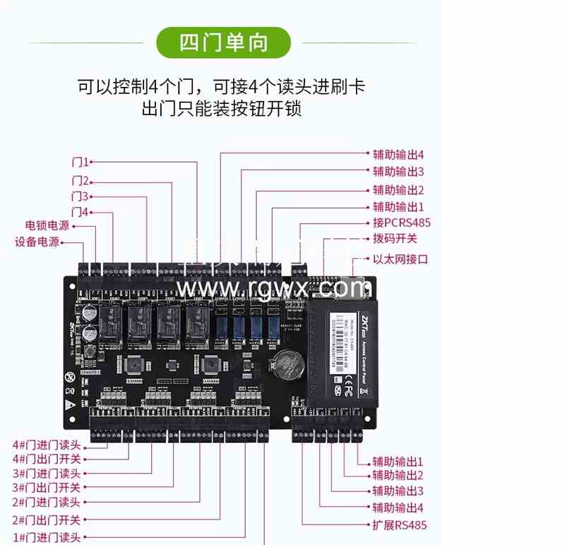 高級(jí)門禁控制器安裝圖以中控智慧ZKTeco為例門禁如下圖: