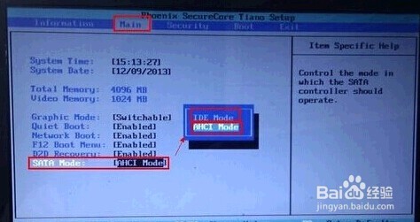 進(jìn)去以后把硬盤的模式改一下就可以了,如原來是ide的話就調(diào)成ahci,如原是ahci的話,就調(diào)成ide。調(diào)好之后
